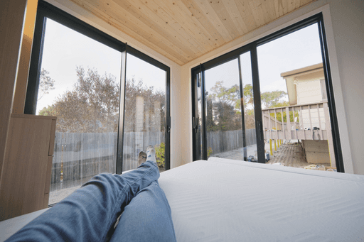 Arctic-tested steel frame cabin with vaulted ceilings and folding furniture for maximum durability and interior volume.